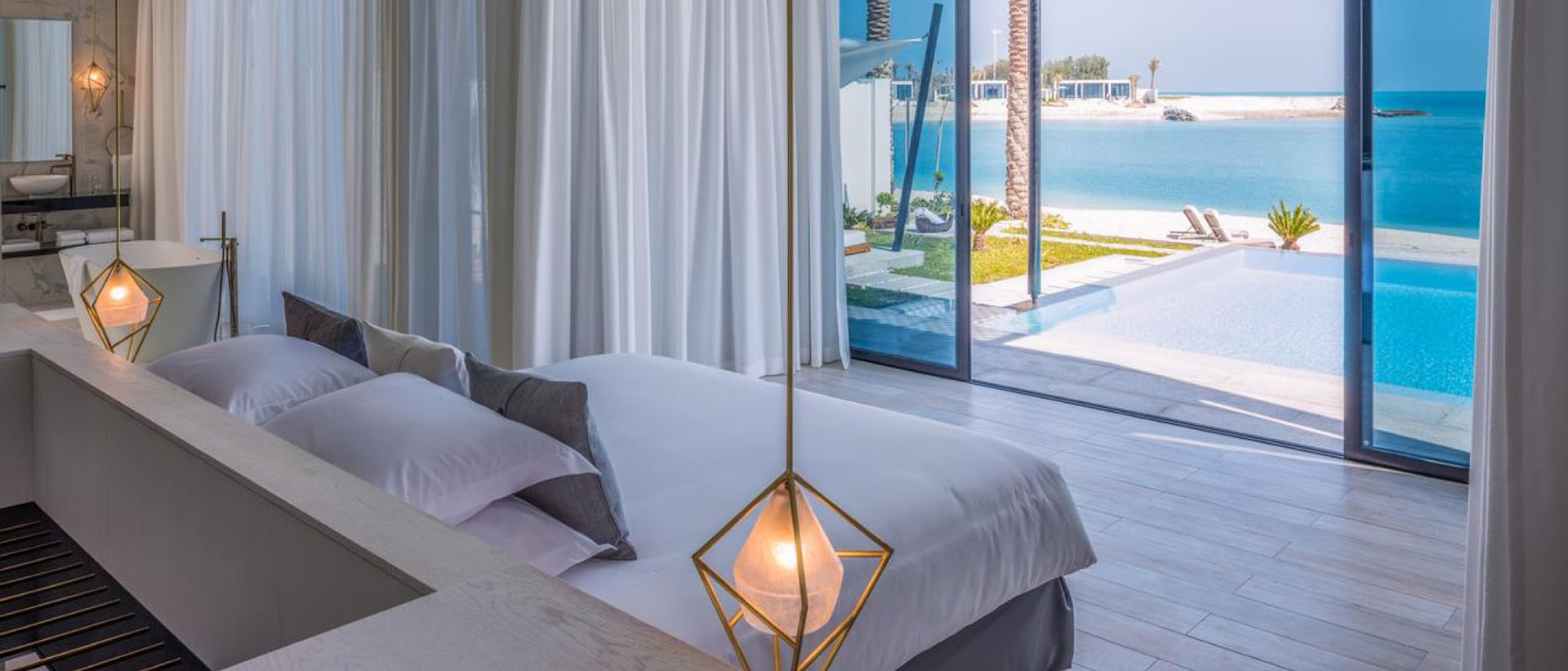 Комплекс вилл располагает частными бассейнами, а с террас открывается вид на живописный ландшафт с раскачивающимися пальмами, сверкающими песчаными пляжами и бирюзовым океаном. Роскошные виллы подарят ультрасовременный комфорт, современный дизайн со всеми удобствами доставит эстетическое наслаждение, а через панорамные окна можно любоваться великолепный видом на Персидский залив. Гостям предоставляются услуги дворецкого.